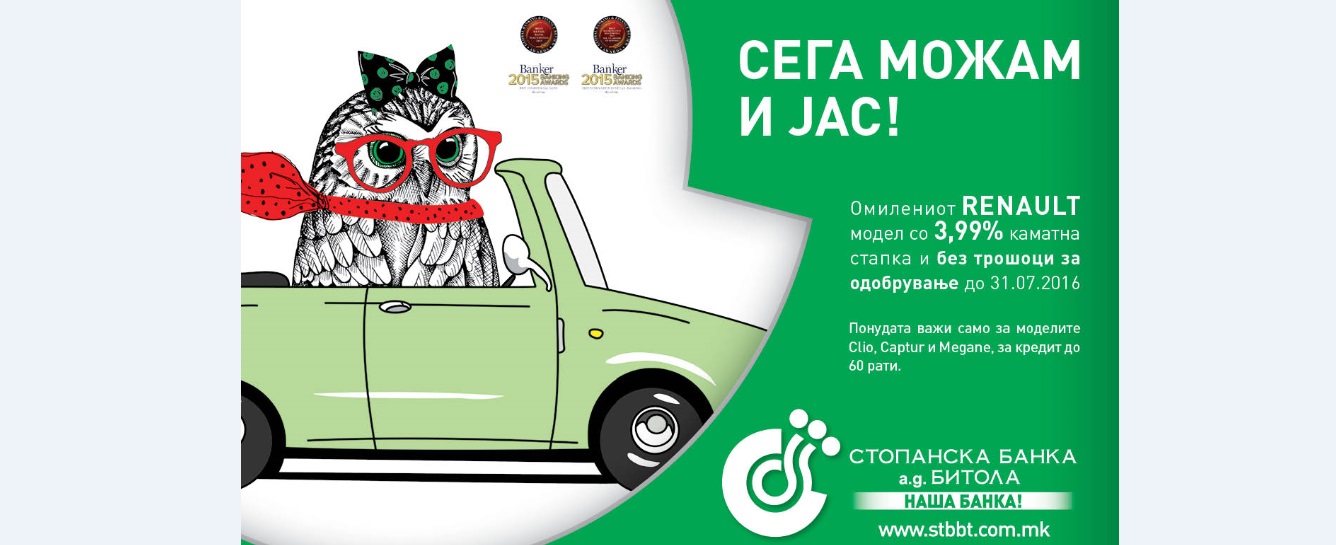 Стопанска Банка а.д. Битола го лансираше својот нов производ „Сега можам и јас!„ Станува збор за исклучително поволен автомобилски кредит кој е изработен во соработка со Аутомотив Груп.