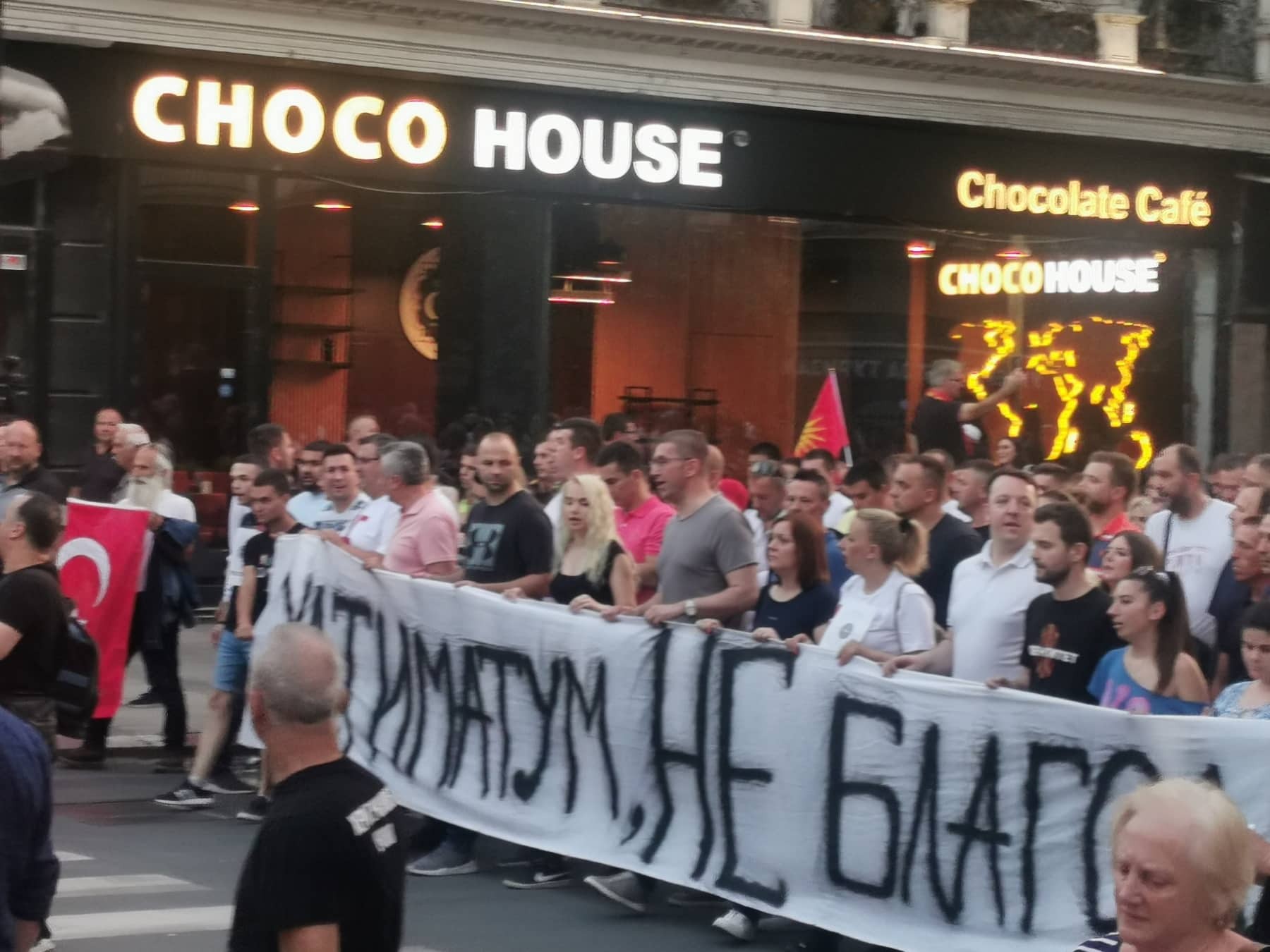 Им порача на властите дека ако потпишат, ќе ги изгубат и парите и Македонија. На Европа и порача да се засрами и дека нема да се продадеме. Веќе шест дена има протести против францускиот предлог.