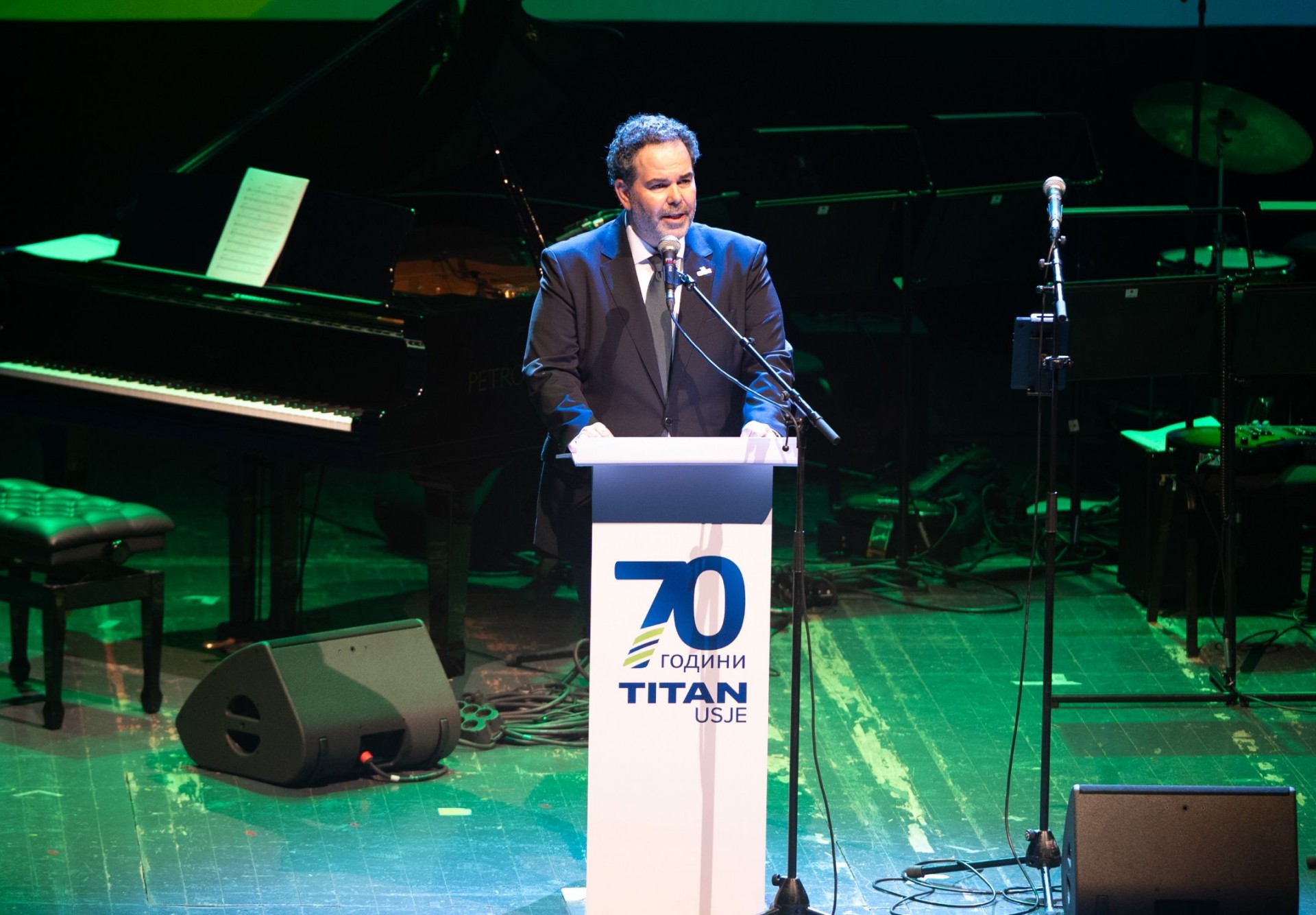 „ТИТАН УСЈЕ е тоа што е денес, благодарение на нашите вработени – повеќе од 3.000 вработени кои низ годините ја обликуваа компанијата преку својот труд, знаење и вредности кои постојано нѐ движат напред. Нашата грижа за заедницата е дел од нас, ние сме одговорен и доверлив партнер кој создава можности, поддржува и поттикнува развој. Со поглед кон иднината, ќе продолжиме да инвестираме во иновации, нови технологии и современи решенија, обезбедувајќи ТИТАН УСЈЕ да остане водечка компанија и сигурен партнер во развојот на земјата“, рече главниот извршен директор, Константинос Николау, обраќајќи им се на сите партнери, вработени, пријатели и гости на јубилејната прослава.