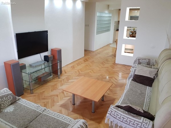 Луксузно опремен двособен стан, лоциран во Центар во реонот на Буњаковец. Станот се наоѓа во зграда на прв кат. Покрај дневна и спална соба, опремени со нов луксузен мебел, располага со одлично опремена бања. Огласувачот нуди ТВ, клима уред, машина за перење алишта, интернет и ред други технички погодности. Огласот е објавен кон средината на минатата година, но е се уште активен. Цената на месечниот закуп за овој стан изнесува 400 евра, без дополнителните трошоци.