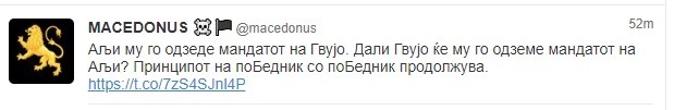 На Твитер има бројни коментари за она што се случува последните два дена во државата, односно исчекувањето дали екс премиерот, Никола Груевски ќе замине на издржување на казна затвор од две години за случајот „Тенк“.