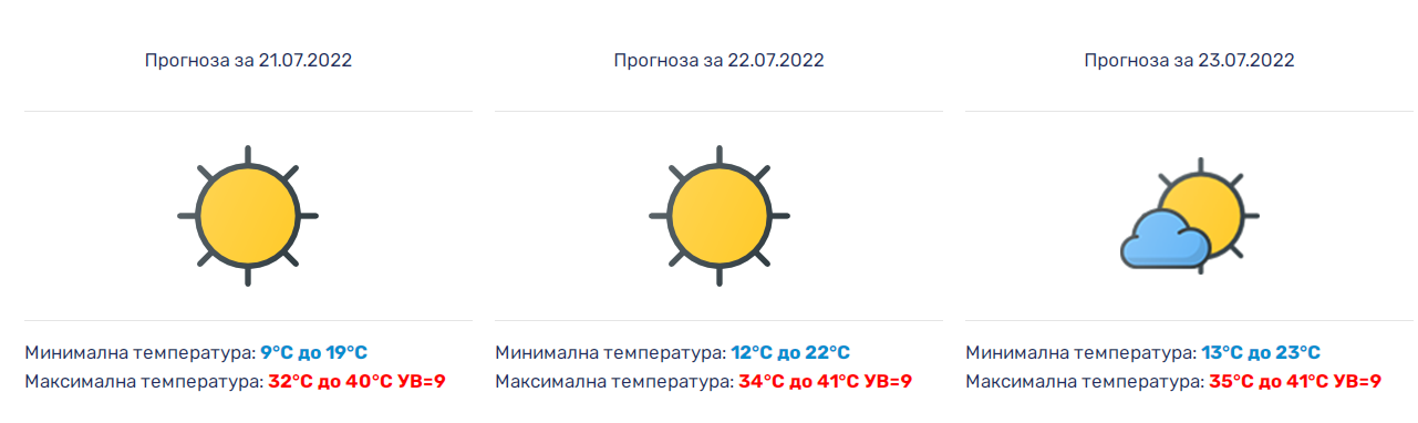 Од таму дополнуваат дека од четврток до недела подрачјето на нашата земја ќе биде под влијание на топол бран и во поголем дел од земјава ќе биде активирано портокалово ниво на опасност од високи температури. Во недела кон крајот на денот ќе има изолирана нестабилност со пороен дожд и грмежи, а од понеделник ќе има благ пад на дневната температура.