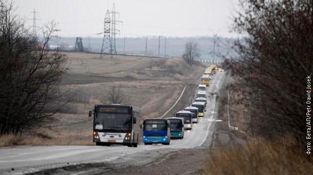 Околу 25 автобуси од двете страни, и проруските сепаратисти и украинските власти, стигнал утрово во Дебаљцево пренесува новинската агенција Франс прес.
