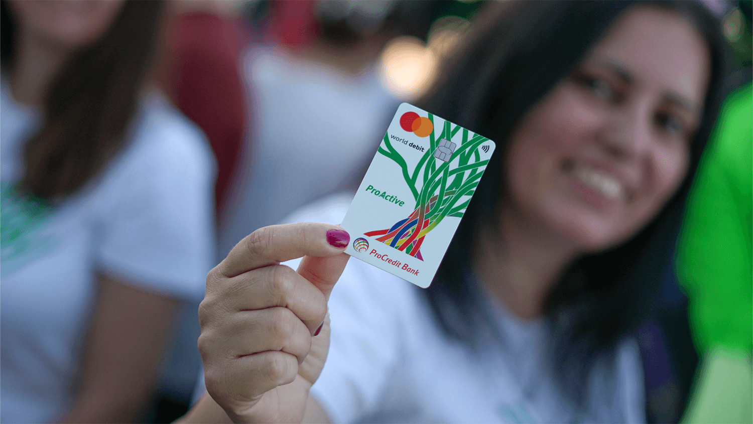 ProActive MasterCard World дебитната картичка е изработена од биоразградлив материјал, во согласност со посветеноста на ПроКредит Банка кон одржливост и одговорно банкарство.