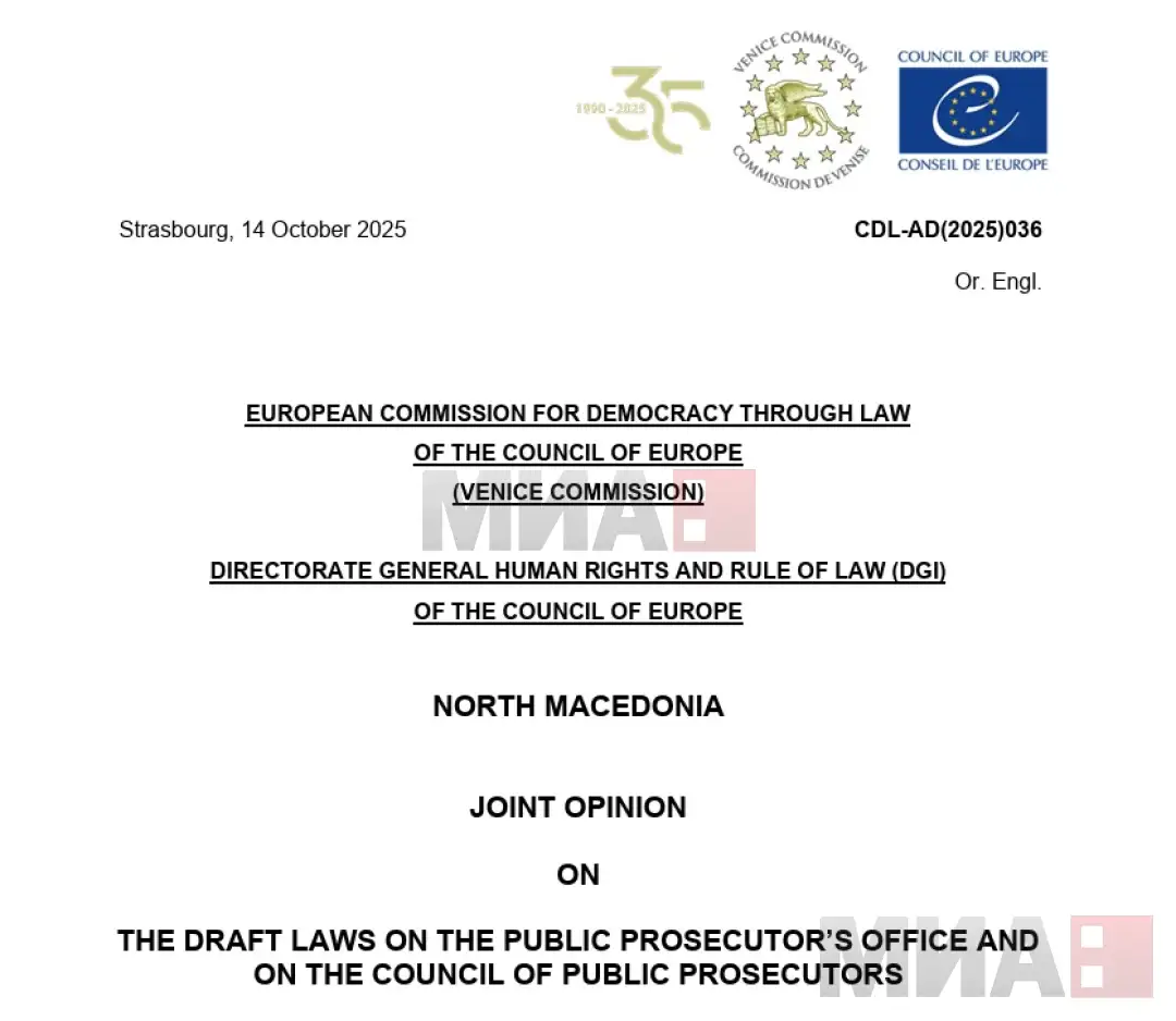 Предложените закони за Јавното обвинителство и за Советот на јавни обвинители и покрај неколку недостатоци, содржат многу позитивни карактеристики - нови или преземени од законите што се во сила, се наведува во заедничкото мислење на Венецијанската комисија и Генералниот директорат за човекови права и владеење на правото (ДГИ) на Советот на Европа по двата предлог законски текста на македонската Влада.