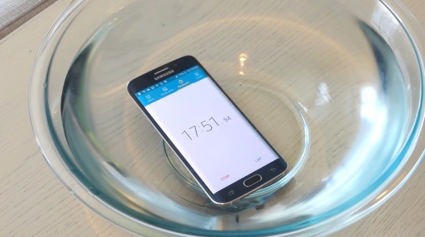 Еден од нив прави изненадувачко откритие дека „Galaxy S6 edge“ е водоотпорен до одреден степен кога се става во сад со вода и таму телефонот поминува дваесетина минути. Уредот се справи со овој тест, но потоа почнуваат проблемите да падне во куќиштето вода, па сигурно не треба да го правите тоа со својот телефон, ако не сакате да го оштетите.