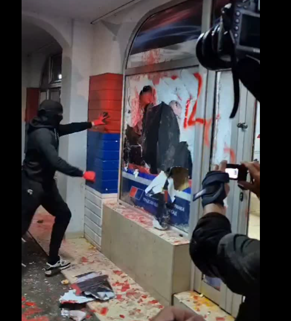 Прво беа искршени стаклата, по што група лица влегоа внатре и изнесоа столици, картони со јајца, вода и други предмети. Сцените се случија во тек на масовните протести што паралелно се одржуваат во повеќе српски градови.