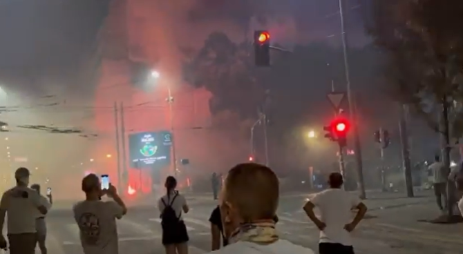 Демонстрантите почнаа да фрлаат камења и шишиња, кои ги погодија и неколку припадници на медиумите. Тоа беше моментот кога почна акцијата на полицијата по што се се разбегаа сите демонстранти по повеќе улици, дел отидоа во паркот дел на кружниот тек. Претходно во интервју на РТС, српскиот претседател Александар Вучиќ кажа дека невозможно е со сила да се смени власта во Србија.фото принтскрин