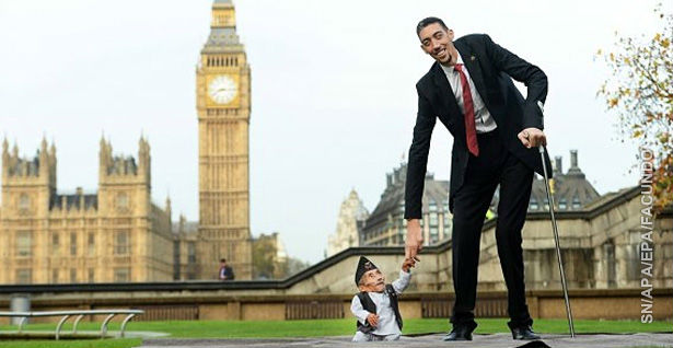 Султан Косен висок 2,51 сантиметри и официјално највисокиот човек на светот и Чандра Бахадур Данги, кој со своите 54,6 сантиметри ја носи титулата најнисок човек на светот, се сретнаа денеска по повод Денот на Гинисовата книга на рекорди.