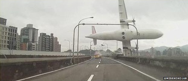 Патничкиот авион на компанијата „Трансазија“, откако ја изгубил контролата, паѓајќи со крилото прво удира во мостот, во момент кога под него минува такси возило, и потоа паѓа во реката Келунг. Дел од трупот на авионот е над површината на реката и според медиумите кои информираат од местото на несреќата поголем дел од патниците се заробени во леталото, а спасувачките екипи се уште се обидуваат да извлечат некој од заробените.