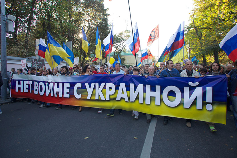 Во организација на опозициските партии одржан е марш на кој учесниците барале Русија да не се меша во внатрешните работи на Украина и да не предизвикува војна во таа земја.