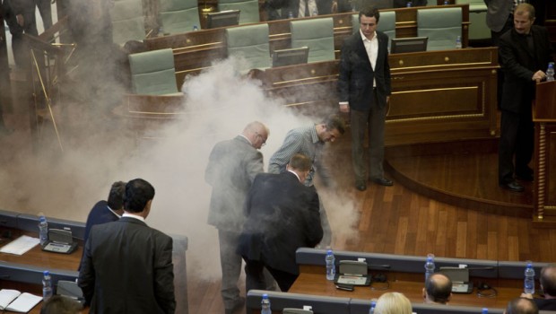 Минатиот четврток солзавец во парламентот во текот на заседанието фрлил основачот на радикалното опозициско движење Самоопределување Албин Курти, инаку најжесток противник на бриселските договори, формирање на Заедница на српски општини како и спогодба за демаркација со Црна Гора.