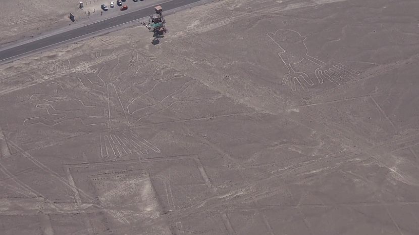 Силен ветер и песочна бура кои ја зафатија пустината Наска во Перу, откриле до сега невидени геоглифи, односно низ огромните вртежи од дамнешната историја кои се нацртани на тлото.