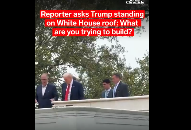 Американскиот претседател Доналд Трамп неочекувано се појави на покривот на Белата куќа. Тој се прошета, а потоа ги шокираше новинарите кога изјави дека размислува за инсталирање нуклеарни ракети од покривот.