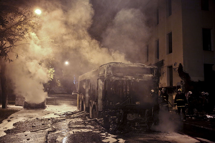 (ВИДЕО) ХАОС ВО АТИНА: Анархисти запалиле автомобили и автобус