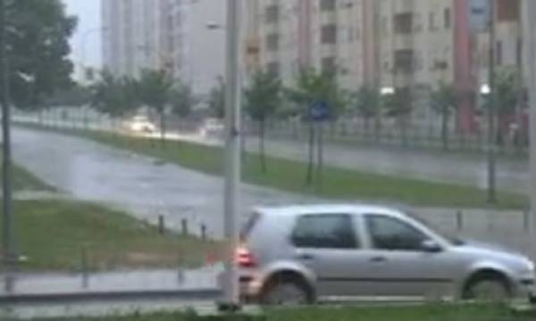 Силен ветер носеше дождови и улиците за неколку минути биле исполнети со вода а засега нема информации за евентуални последици од невремето во градот кој и изминатите денови, со сончеви интервали, често беше изложен на изненадни врнежи.