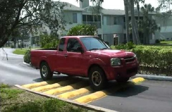 Не знаеме кој ја инсталирал оваа неверојатна препрека во Флорида, која потсетува на полигон за тестирање на систем за суспензија, но изгледа дека ја постигнале целта - возачите не само што мора да забават, туку се принудени да го запрат своето возило.