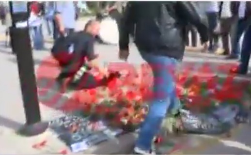 (ВИДЕО) Линчуван хулиган кој го уништил привремениот меморијал на жртвите од нападот во Анкара