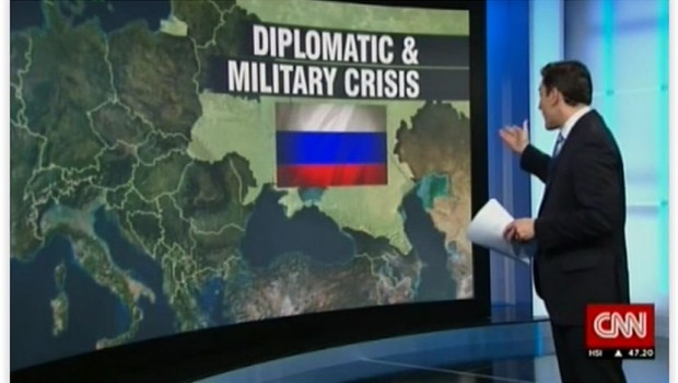 При известување на информативниот канал „CNN“ Украина е означена како дел од Русија, односно биле обоени во иста боја, додека руското знаме се вее низ Украина, под наслов „Дипломатска и воена криза“.