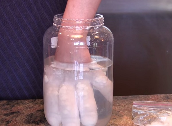 Откако ја стави раката во теглата за само неколку секунди неговите прсти станаа обложен со дебел слој на лед, но наместо да лади тој грее.