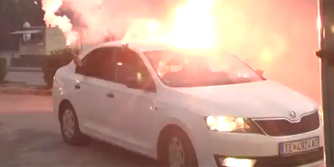 (ВИДЕО) Почна лудницата во Албанија: Навивачите палат бакли од автомобили, хеликоптери надлетуваат наоколу!