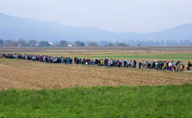 Хеликоптерот снимил како бегалци слегуваат од воз во Хрватска и се преведени на границата со Словенија од хрватската полиција. Хрватска веќе ги испраќа бегалците кон Словенија, откако Унгарија ја затвори границата.