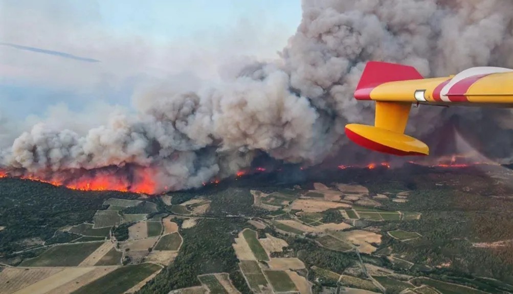 Пожарот на околу 100 километри од границата со Шпанија, близу Средоземното Море, се ширеше невообичаено брзо благодарение на силните ветрови и сувата вегетација. Во областа владее суша неколку месеци.