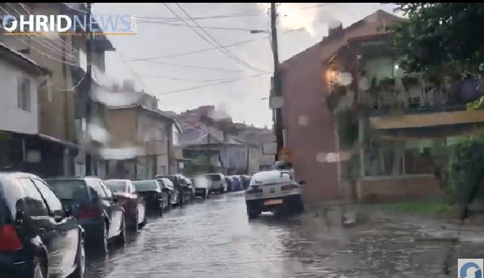 (ВИДЕО) Во невреме во Охрид оштетени се куќи и автомобили