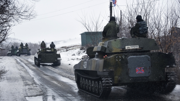 Украинските сили за безбедност водат борби со силите на Доњецка Народна Република како би се извлекле од обрачот кај градот Дебаљцево во регионот на Доњецк.