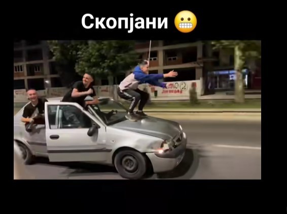 (ВИДЕО)ЕДЕН НА ХАУБА, ДРУГИ ДВАЈЦА ВИСАТ ОД ВРАТА: Момчиња од Скопје дивееја низ скопските улици