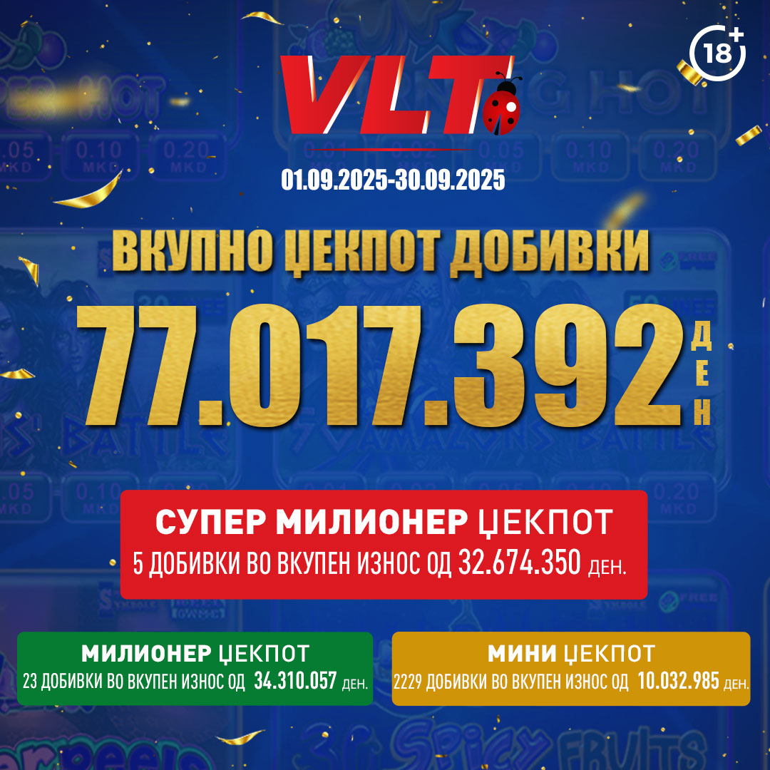 Видеолотарија Касинос Австрија им исплати фантастични 77.017.392 денари (околу 1.250.000 евра) на своите играчи на ВЛТ терминалите ширум Македонија во септември. Овие бројки не се само статистика – тие претставуваат илјадници нови среќни приказни!