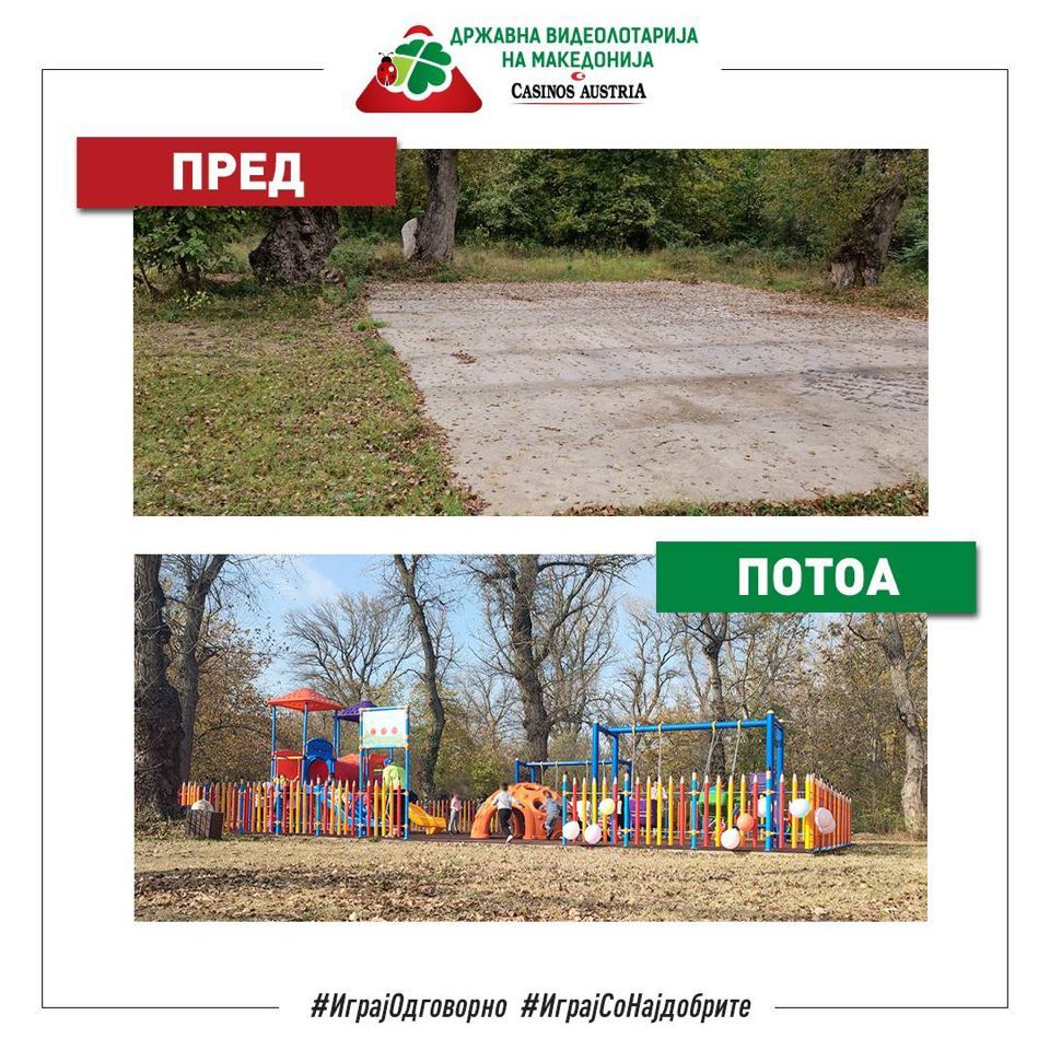 Видеолотарија одговорно продолжува со својата мисија за креирање на зони за спорт, забава и рекреација на најмладите низ целата земја. Со задоволство може да споделиме дека многу скоро ќе ги претставиме и другите игралишта на кои работевме изминатиов период.