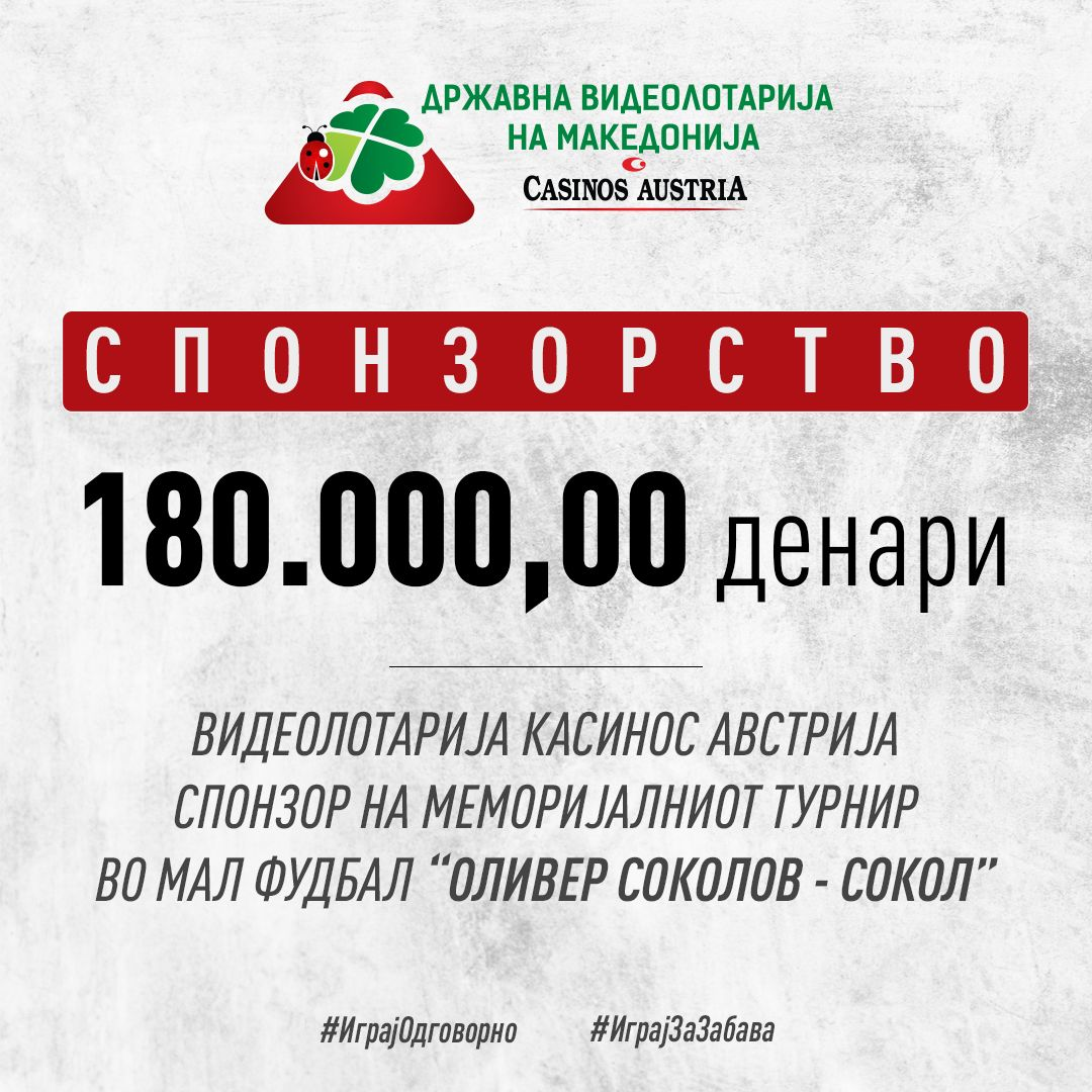 Видеолотарија Касинос Австрија со спонзорство од 180.000,00 денари придонесе за рестартирање на турнирот во мал фудбал „Сокол”.