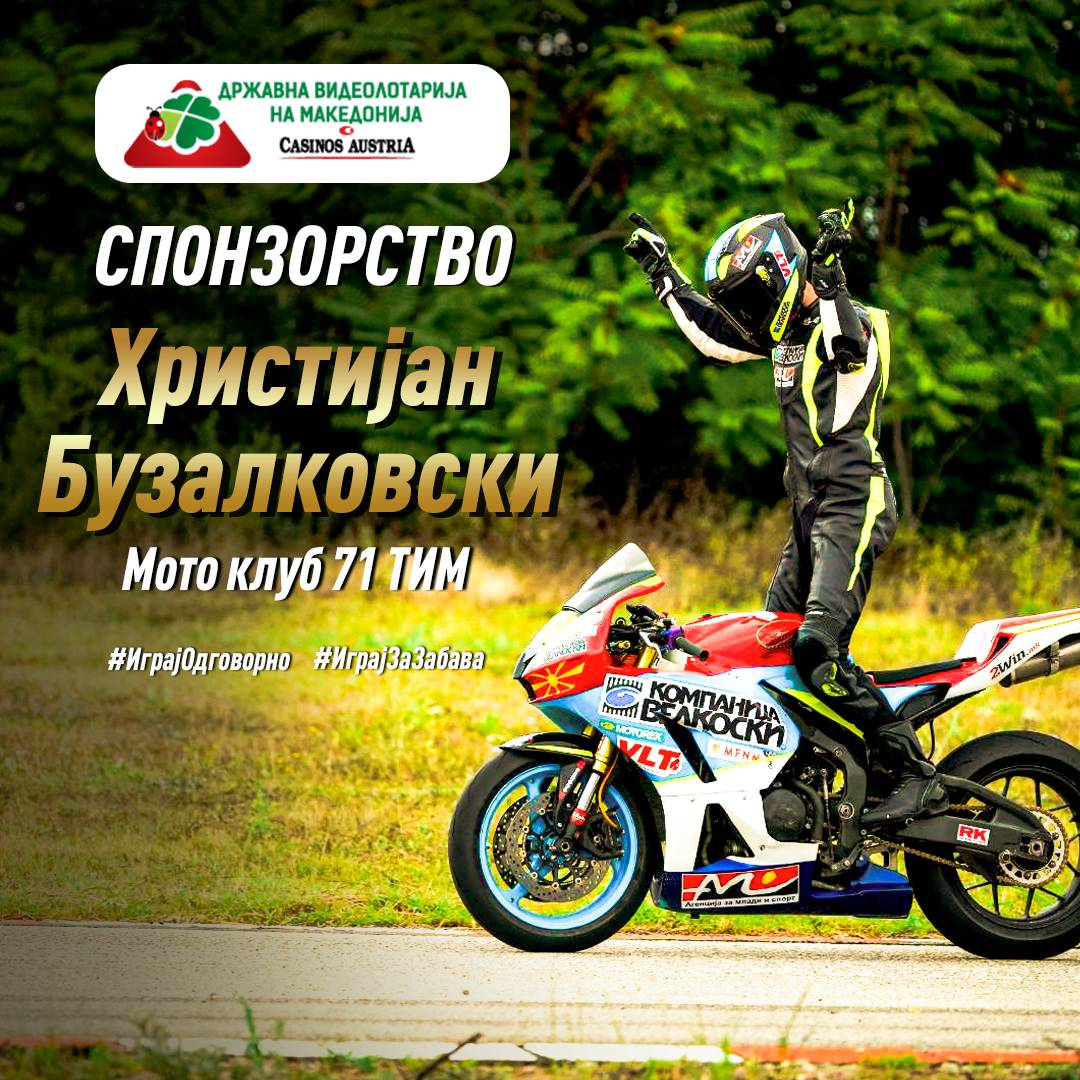 Видеолотарија Касинос Австрија со спонзорство од 2.500,00 евра го поддржа македонскиот мотоциклистички шампион Христијан Бузалковски за учество на БМУ Европскиот шампионат во брзински мотоциклизам.