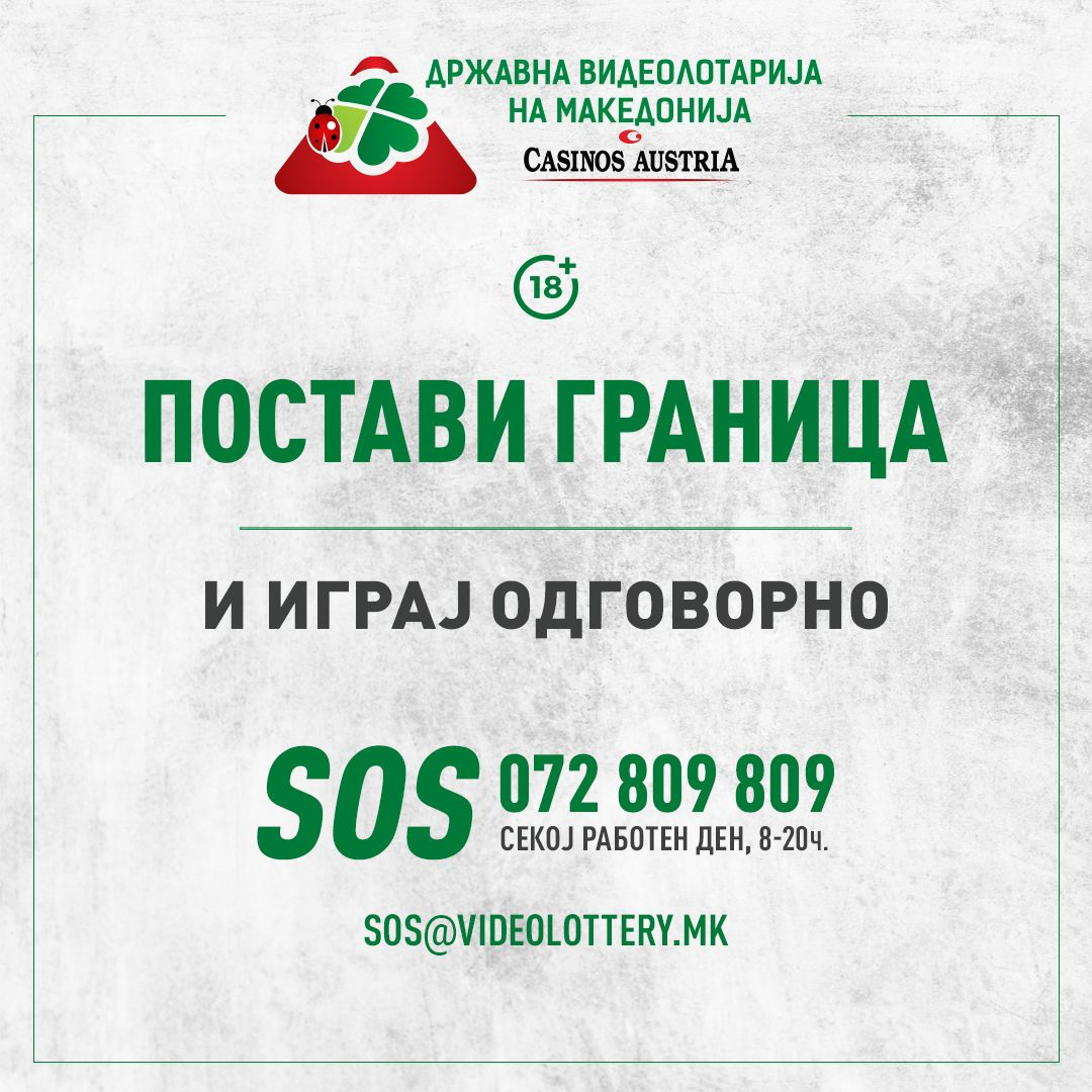 Видеолотарија Касинос Австрија како одговорна компанија, континуирано работи на едукација на играчите за опасностите кои ги предизвикува компулсивното играње. Во 2019 година формиравме СОС тим, прв од ваков вид во нашата земја. Активирана е и СОС линија со вклучена телефонска поддршка и деск верзија преку мејл. Зад СОС линија стои екипа од стручни лица.