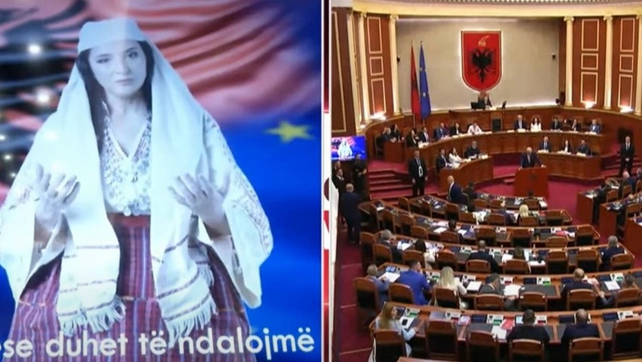 ВИДЕО: Виртуелната AI министерка се обрати за прв пат во албанското Собрание и направи тепачка