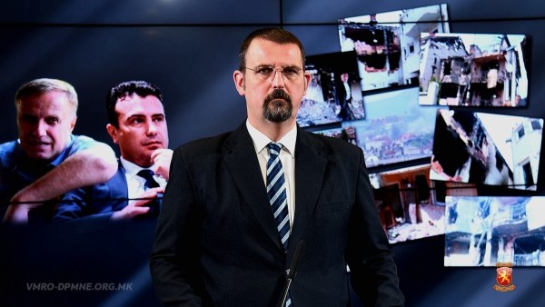 „Наместо да биде со семејствата на загинатите херои, Заев отиде на 9 мај на Косово чијашто влада финансиски ги помогна семејствата на терористите кои убиваа во Диво Насеље. Зоран Заев не смее со какви било измислици за меѓународни истраги да се обидува да ги ослободи терористите. Зоран Заев не смее да плаќа со пари на граѓаните советници кои ликуваат на погибијата на македонските херои“- вели тој.