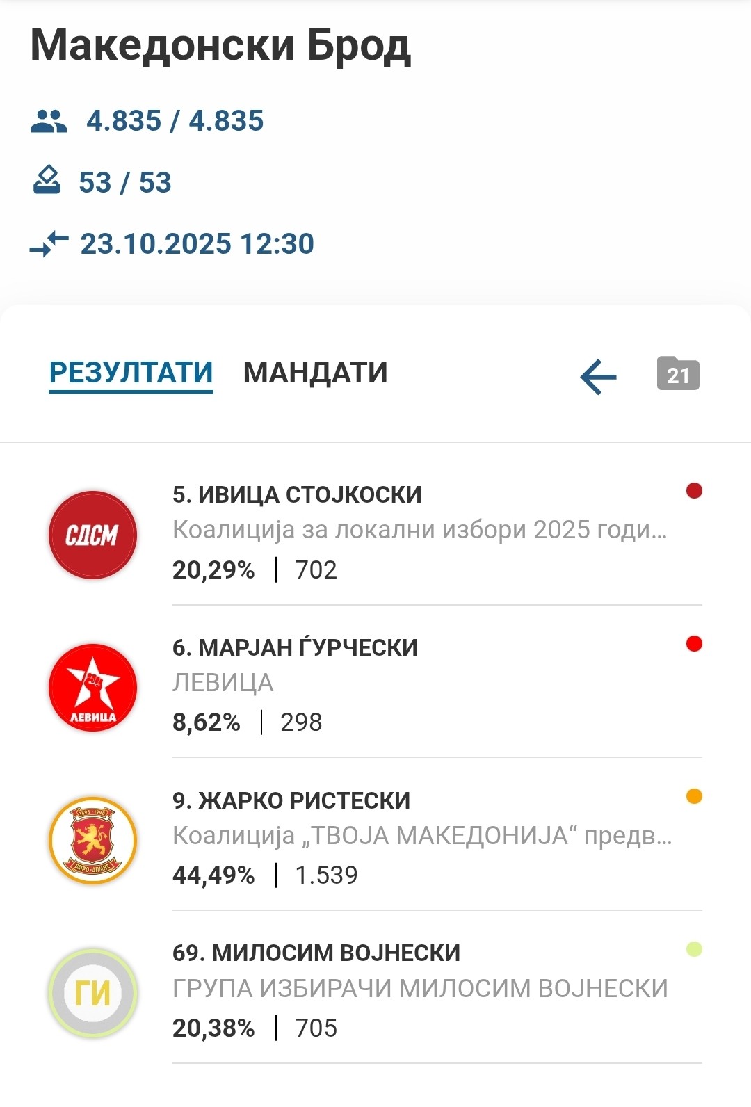 Се испостави дека Војнески изворно бил од ВМРО-ДПМНЕ, а во вториот круг со гласовите на СДСМ и Левица би можел да победи. Така ВМР-ДПМНЕ победува иак нема половина од потребните гласови во првиот круг, а истовремено во вториот нема да може да учествува никој на местото на Војнески.