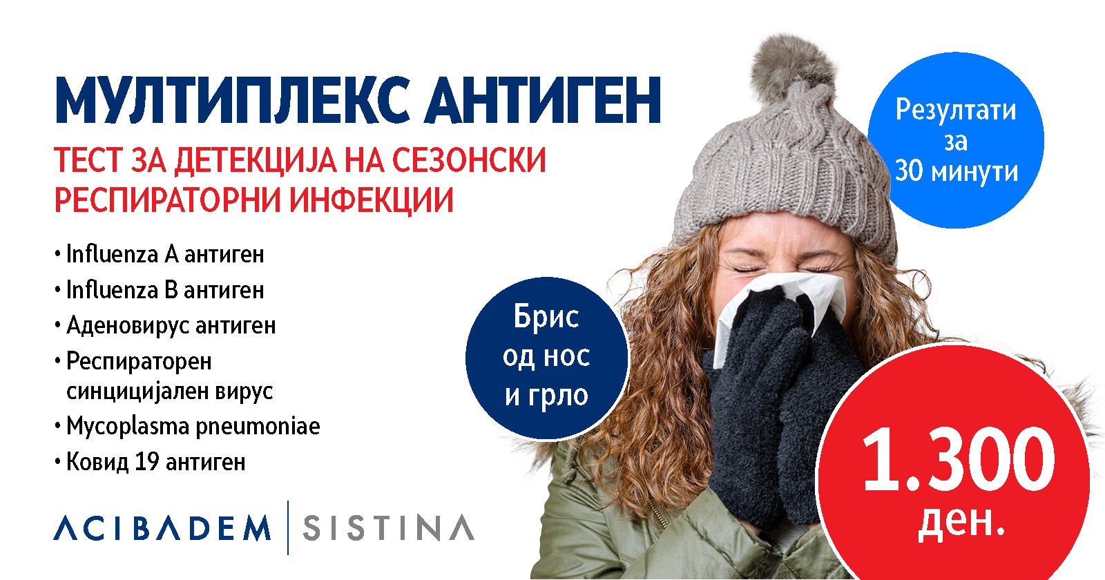 Во Клиничка болница „Аџибадем Систина“ е достапен нов тип тест за детекција на сезонски респираторни инфекции. Во услови на зголемена појава на инфективни заболувања, особено кај детската популација, со овој антиген тест, чии резултати се добиваат за најмногу половина час, на пациентите ќе им биде овозможена брза и точна детекција на инфекцијата, а со тоа и навремено и ефикасно лекување.