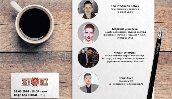 Гости на настанот ќе бидат: Ира Стефанов Бабиќ – Ко – сопственик и директор на агенцијата Brand Union, Мартина Димоска – најдобар македонски студент, најмлад иновативен научник и најмлад N.A.S.A ментор за 2015 г, Филип Ачкоски – Регионален менаџер за Македонија, Бугарија, Албанија и Косово во хрватската фармацевтска компанија PrarmaS и Пеце Ацев – Водител и PR, co – fоunder на Рековинст АБ.
