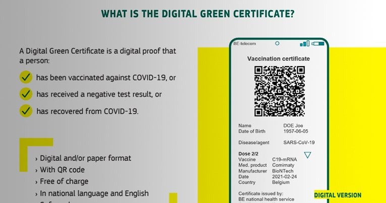 Таканаречениот дигитален зелен сертификат ќе биде доказ дека лицето е вакцинирано против ковид-19, дека има негативен резултат од тест или дека ја прележало болеста.