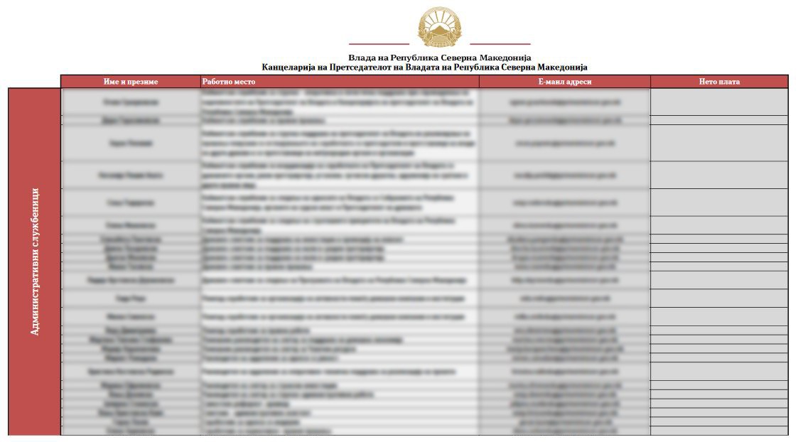 Во Канцеларијата на премиерот пак, има 24 други вработени. Но, иако во формуларот е наведено дека треба да биде објавена и нивната плата, тоа не е сторено.
