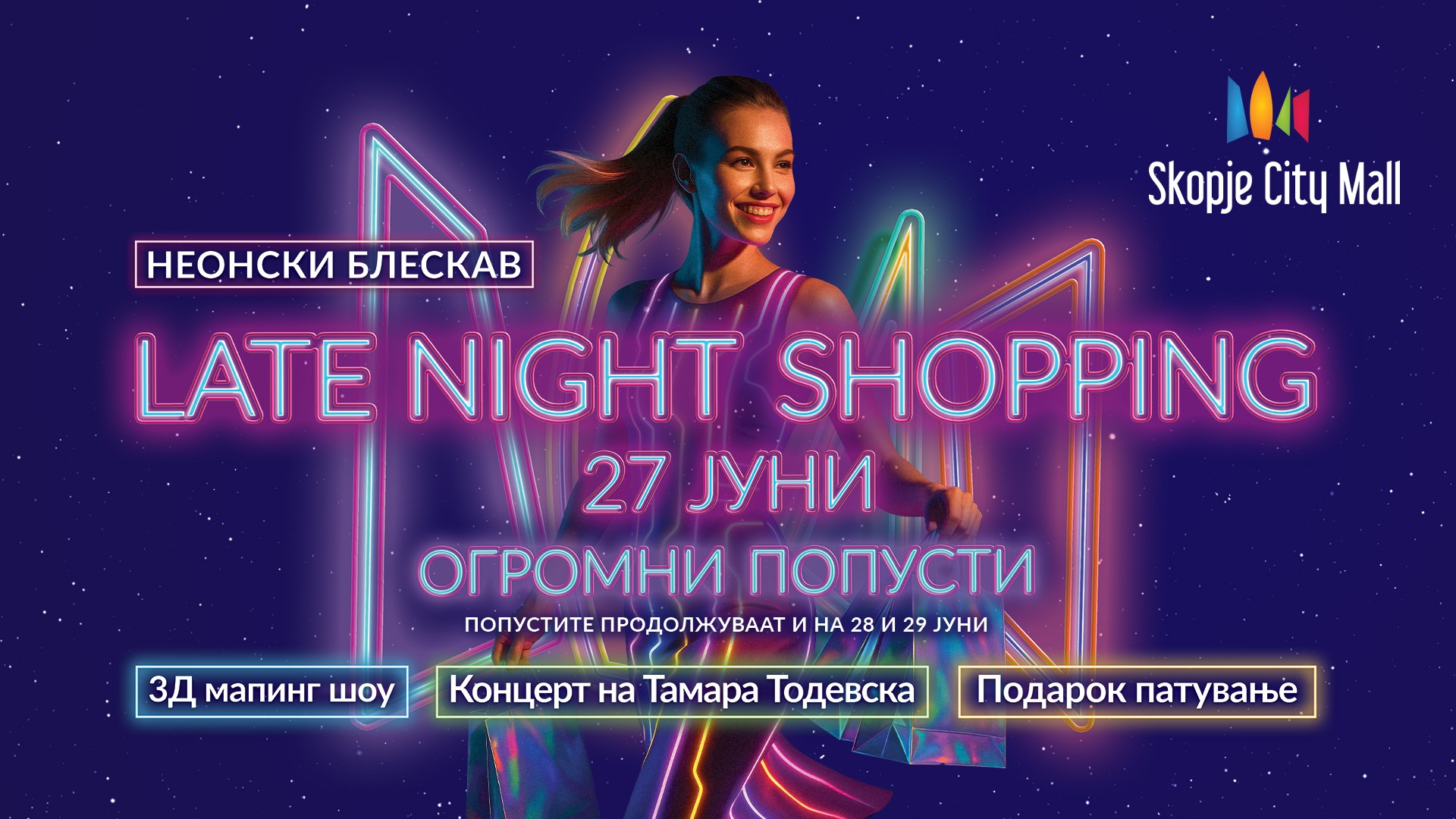 На 27 јуни се гледаме во Скопје Сити Мол, за уште еден неонски блескав Late Night Shopping!