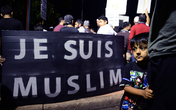 Околу 800 демонстранти излегоа на улиците со плакати на кои на француски јазик пишува „Јас сум муслиман“.