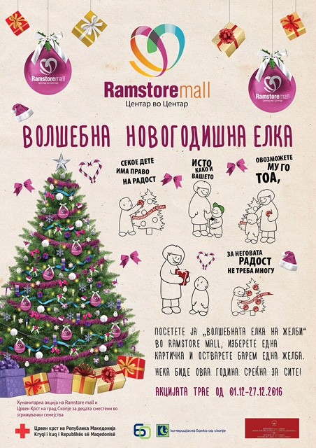 Ramstore Mall во соработка со Црвен Крст на град Скопје традиционално ја организира хуманитарната акција за децата сместени во згрижувачки семејства наречена како „Волшебна новогодишна елка“.