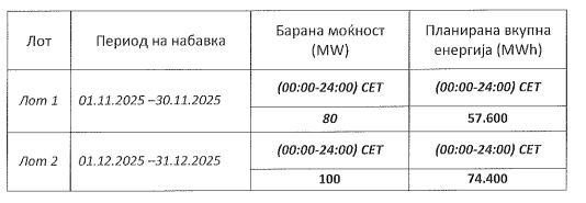 Снабдувачите и трговците своите понуди ќе треба да ги достават најдоцна до утре, а електричната енергија ќе се купува во десет периоди во текот на овие два месеци.