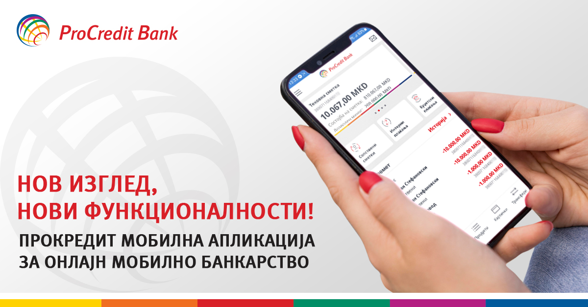 ПроКредит Банка ја претстави најновата, унапредена верзија на апликацијата за мобилно банкарство, со нов, подобрен кориснички интерфејс кој е практичен и интуитивен, и нуди лесна навигација низ бројните функционалности.