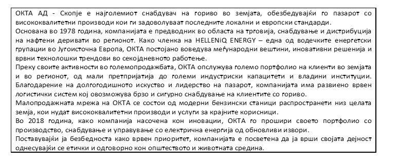 Главниот извршен директор на ОКТА, Димитриос Пасхос, нагласи дека ОКТА и натаму ќе продолжи да инвестира во зелена енергија.