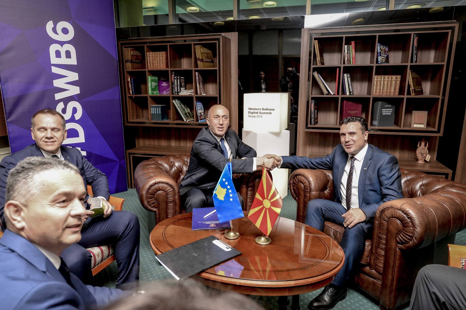 Претседателот на Владата на Република Македонија Зоран Заев и премиерот на Република Косово Рамуш Харадинај за време на „Дигиталниот Самит на Западен Балкан“ на кој учествуваа во претпладневната сесија, имаа средба на која изразија заедничко задоволство од актуелните меѓусебни односи меѓу двете земји.
