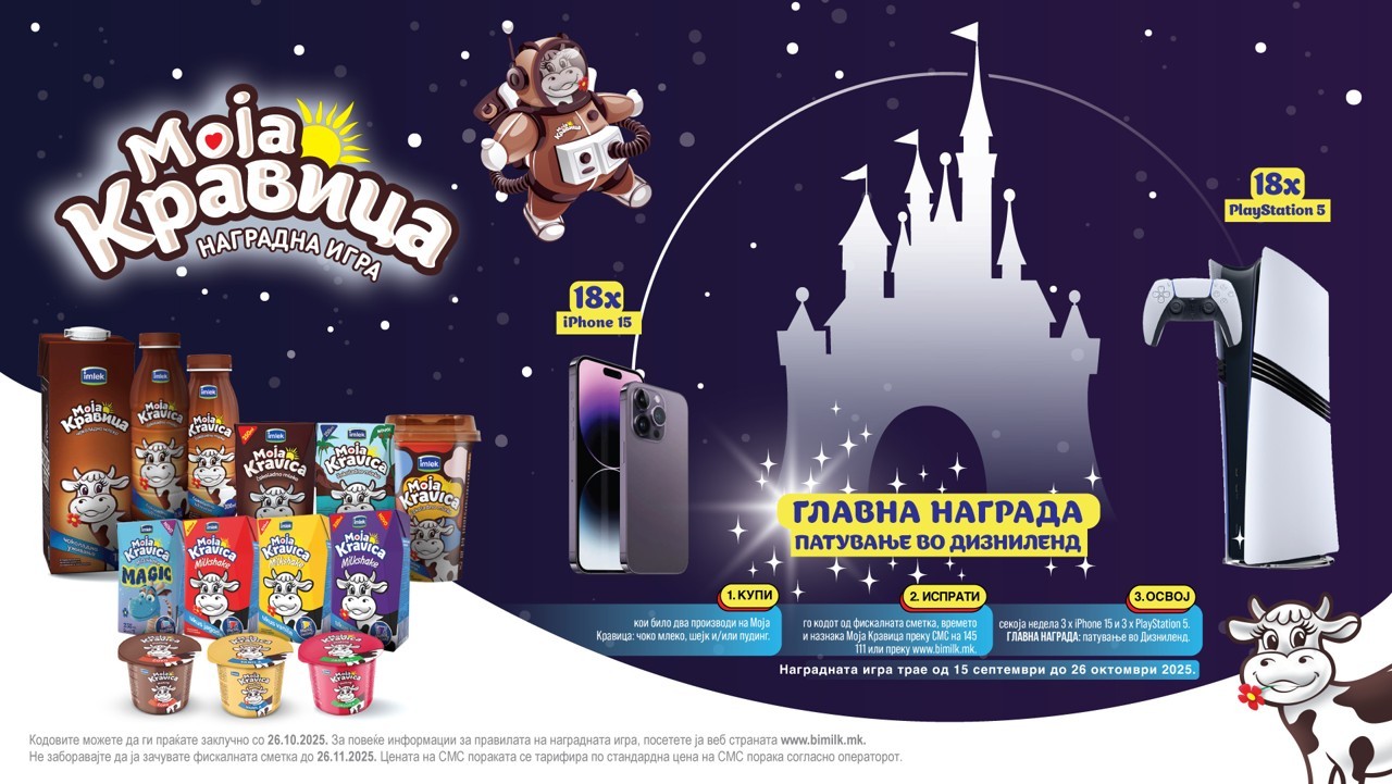 Наградната игра ќе трае од 15 септември до 26 октомври 2025 година и има за цел да понуди уникатно искуство и дополнително да ја зајакне поврзаноста со потрошувачите. „Моја Кравица“ чоколадно млеко со децении е симбол на вкус и радост во секое семејство. Денес, тоа е бренд кој ужива доверба кај потрошувачите, препознатлив по својот автентичен вкус, врвен квалитет и топлина што ја внесува во секојдневните моменти, правејќи го омилен избор за малите и за големите.